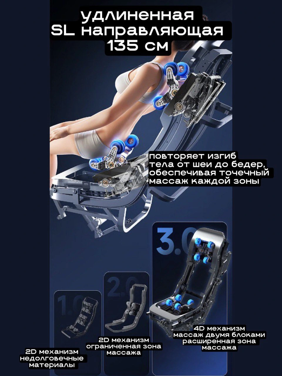 ●Направляющая типа SL обеспечивает разнообразные техники массажа: разминание, надавливание пальцами, постукивание, синхронное разминание с ударным эффектом