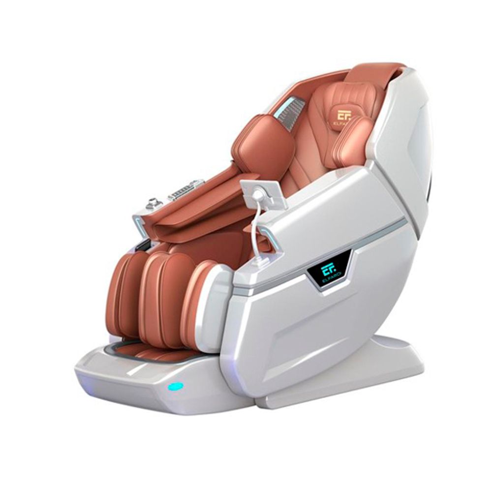Массажное кресло в стильном дизайне, сочетающем белый и оранжевый цвета, станет не только функциональным элементом вашего интерьера, но и источником настоящего релакса. Это кресло оснащено передовой 3D SL-направляющей, которая обеспечивает максимально точную адаптацию массажных роликов к анатомическим особенностям вашего тела.
