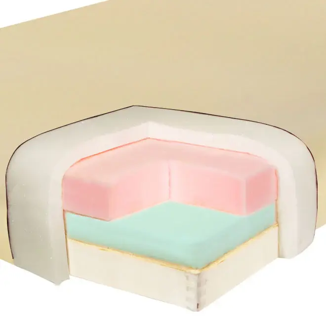 - Обивка из полиуретана (PU) — водо- и маслостойкая, не содержит хлорфторуглеродов (CFC), с прочной джинсовой подкладкой для увеличения срока службы.