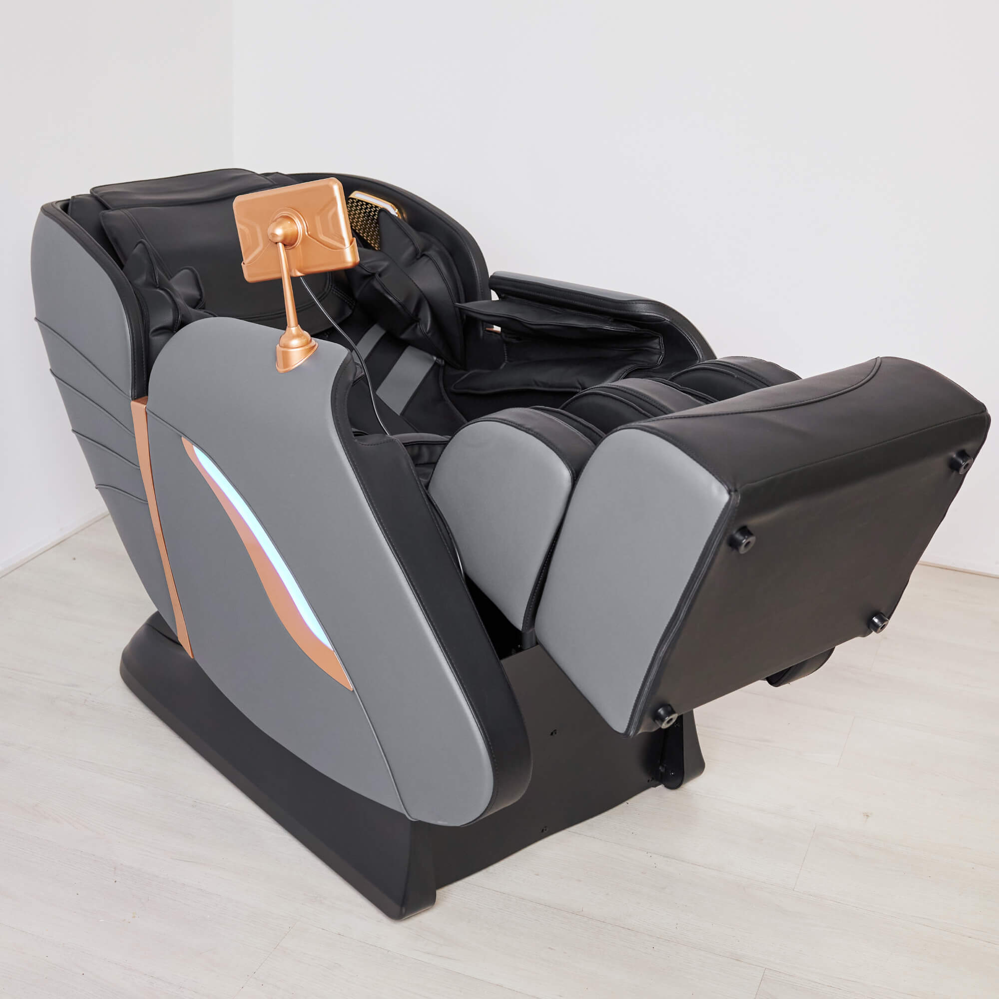 - ZERO GRAVITY. Активация ZERO-G автоматически наклоняет конструкцию под определенным углом. Нагрузка распределяется равномерно по телу, возникает ощущение легкости, сравнимое с состоянием невесомости. С этой функцией тело находится в самом комфортном положении, оно максимально расслабленно, а значит, пользы от массажа будет гораздо больше, чем в любом другом положении. В состоянии невесомости нагрузка, действующая на позвоночник, равномерно распределяется по поверхности кресла. Снимаются спазмы в мышцах спины и шеи, улучшается кровообращение, восстанавливаются жизненно важные процессы, улучшается сон. ZERO-G подойдет для релаксации и оздоровления людей, занятых на тяжелых работах, офисных сотрудников, спортсменов, водителей авто, а также людей испытывающих большие нагрузки на работе и дома. Предусмотрена регулировка угла наклона 118° ~ 145°.
