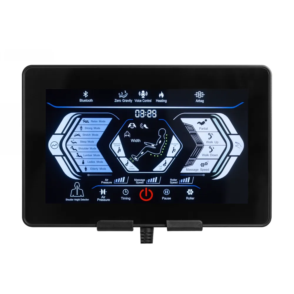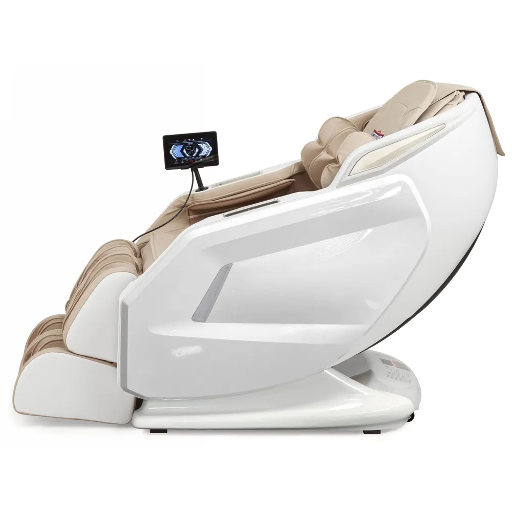 Нулевая гравитация (Zero Gravity), или наиболее удобная и комфортная поза, в которой тело располагается под углом 35-40 градусов, что обеспечивает более равномерную и более оптимальную нагрузку на массажные механизмы. Поза «Zero gravity» позволяет приподнять ноги, благодаря чему происходит отток крови, а массаж становится настоящим наслаждением. L-образная каретка сделает массаж максимально детализированным, начиная от ягодиц, заканчивая шейным отделом позвоночника. В кресле предусмотрено 8 автоматических программ для самых взыскательных пользователей. Присутствует массаж сжатым воздухом для ног, рук и плеч, а также функция нагрева спинки и сиденья кресла. Пульт управления планшетного типа, интуитивно понятный интерфейс. В правом подлокотнике встроен дополнительный пульт для выбора наиболее востребованных функций. В левом подлокотнике расположена беспроводная зарядная платформа для смартфонов* (*смартфон должен поддерживать функцию беспроводной зарядки)